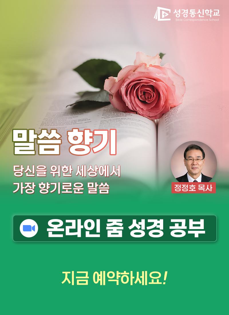 - 신앙 생활에 깊이를 더하고 성경을 보다 체계적으로 공부하고 싶으신 분들을 위해 <말씀 향기> 온라인 줌(ZOOM) 수업을 준비했습니다.